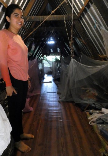 The girls’ dorm on stilts with a tent-shaped thatched roof included a hummingbird nest they were preserving. The small solar lamp, Shavi, my student guide is happy to use my small gift, a solar lamp, as a night light. http://sacredgroves.in/
