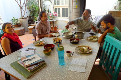 Suresh Jayaram is a gallerist and founder of 1Shanthiroad Studio. He is also a descendent of a nursery community near Lalbagh. A walking encyclopedia he points us to special flowering trees, their exotic origins, symbiotic relationships between trees – birds – insects – and yes, humans. I leave with hundreds of photos. Some will be part of my TREE animation. This is a first expedition with a handful of us who will be involved in the Art-in-Transit class + project at the Metro station. Aside of Arzu, Suresh and me, there are Anna, a psychologist and Yash, an artist, Rishab and Kanishka. We end at the famed lunchroom LMR.