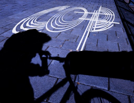Reflections on options and failure of an ‘Intelligent Species’ (L.E.S.S., FossilFree, COP21) started ca 2014 – installation, projection mapping + bike projection performance